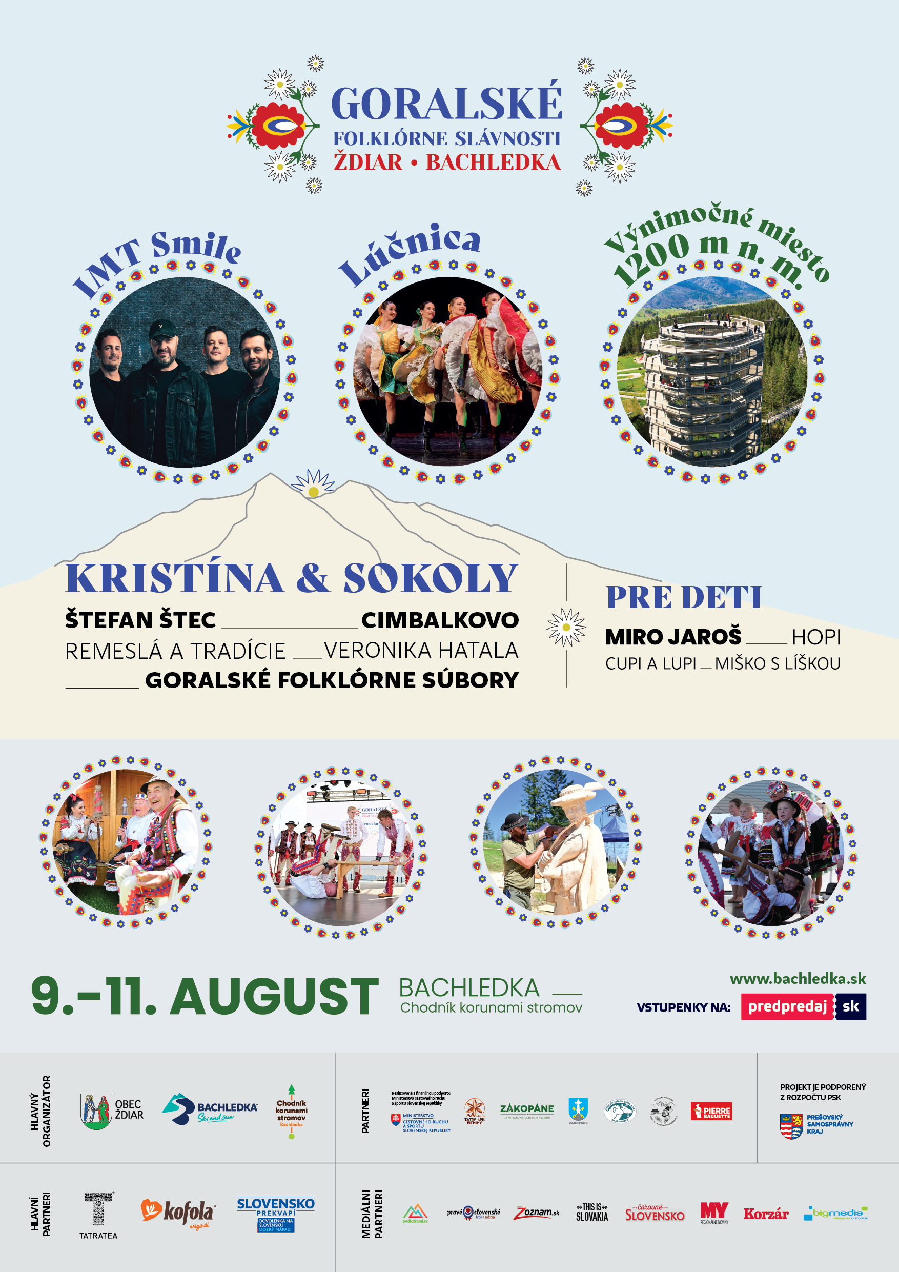 Mesiac august patrí množstvu festivalov a slávností, no azda najkrajšie chvíle zažijete na Bachledke. Ždiar ponúkne i tento rok nevšedné prepojenie nádhernej goralskej kultúry s modernou POP music. Najväčšími lákadlami budú tradičné goralské remeslá, IMT Smile či jazda lanovkou priamo na Chodník korunami stromov v cene lístka.