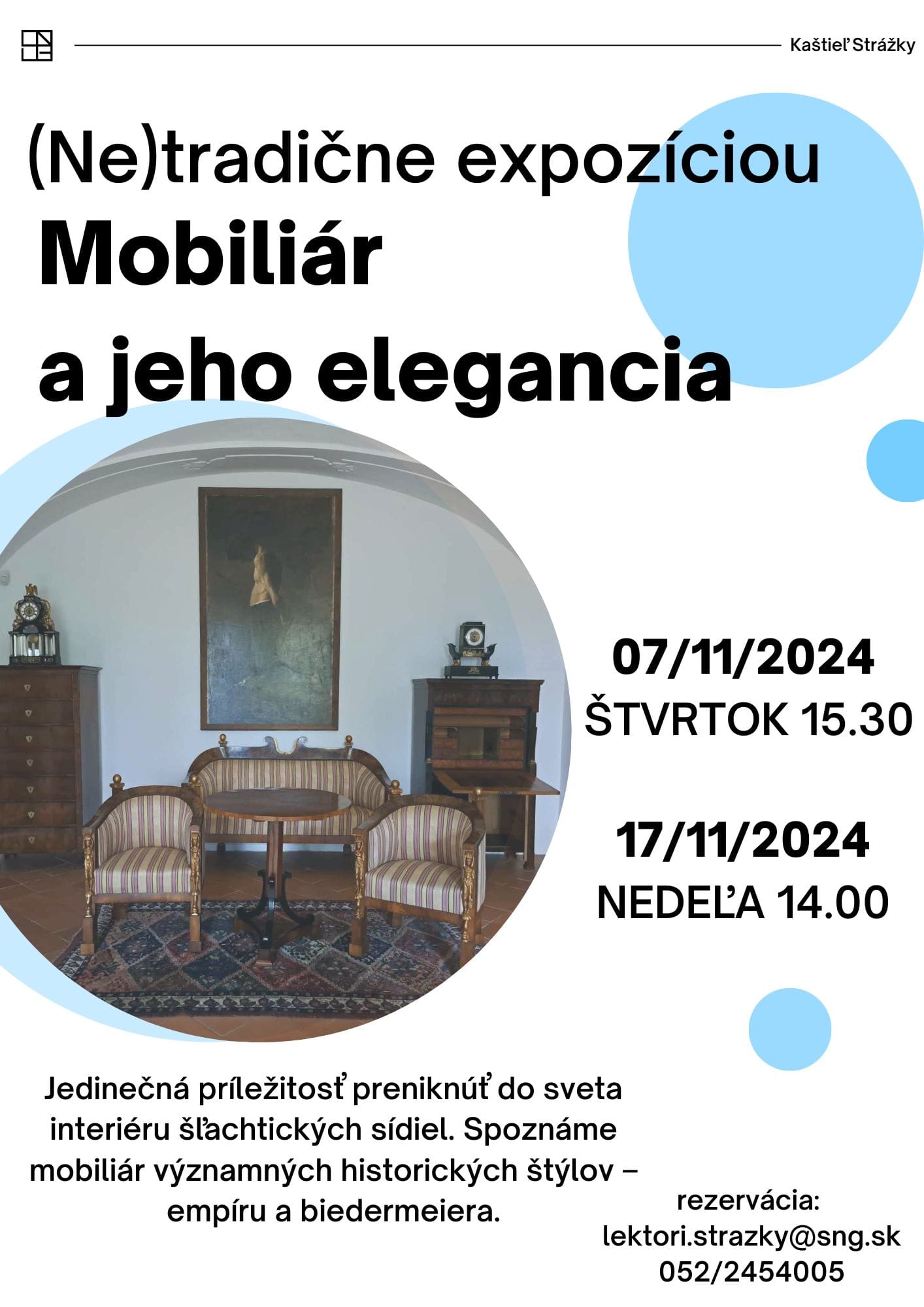 SNG Kaštieľ Strážky pripravila vo štvrtok 7. novembra 2024 o 15.30 expozíciu „Mobiliár a jeho elegancia“ a pozýva nahliadnuť do interiéru šľachtického sídla z rôznych uhlov pohľadu.
