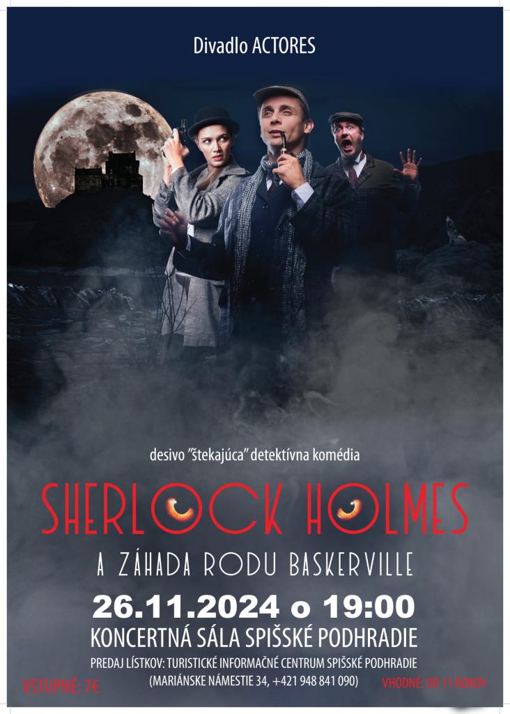 Mesto Spišské Podhradie srdečne pozýva na divadelné predstavenie „SHERLOCK HOLMES A ZÁHADA RODU BASKERVILLE“, ktoré sa uskutoční 26. novembra 2024 o 19:00 hod. v Koncertnej sále v Spišskom Podhradí.