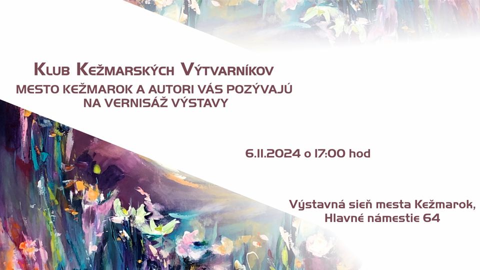 Klub kežmarských výtvarníkov a mesto Kežmarok vás srdečne pozývajú na vernisáž výstavy, ktorá sa uskutoční v stredu 6. novembra 2024 o 17.00 vo Výstavnej sieni na Hlavnom námestí 64 v Kežmarku.