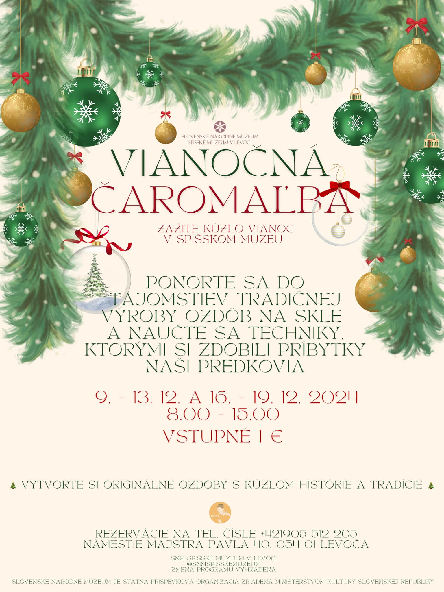 SNM-Spišské múzeum v Levoči pozýva na tohtoročný vianočný program pod názvom VIANOČNÁ ČAROMAĽBA.
